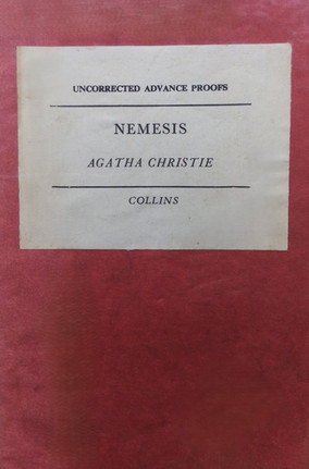 1971: Nemesis, Collins, The Crime Club, London. Referred to as an Uncorrected Advance Proofs edition, published in red soft covers, with the informational label glued onto the front cover (image above right).