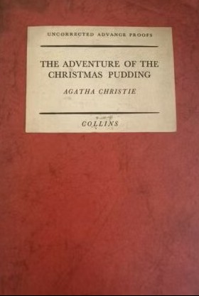 1960: The Adventure of the Christmas Pudding, The Crime Club, London. Referred to as an Uncorrected Advance Proofs edition, published in red soft covers, with the informational label glued onto the front cover (image above right). The book’s title was expanded when published as The Adventure of the Christmas Pudding and a Selection of Other Entrees.