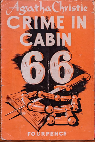 The first - Crime in Cabin 66 - is believed to have been published in 1944, priced 'Fourpence'. This Vallancey Press printing is a small, delicate paperback with covers made from very thin paperstock. There is a line drawing on the inside front cover. Todd-Bantam, London, first published this story as a single book in 1943, and this Vallancey Press edition was likely printed the following year. The story was also included in the small paperback Poirot on Holiday published by Todd in November 1943 that contained this story, along with "The Regatta Mystery".